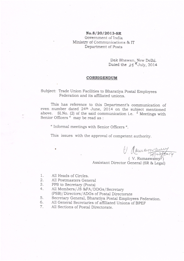 1st Kerala State Convention of All India Postal & RMS Pensioners Association (AIPRPA) will be held at Thiruvananthapuram on 2nd October 2014, to form the Kerala State Committee of AIPRPA