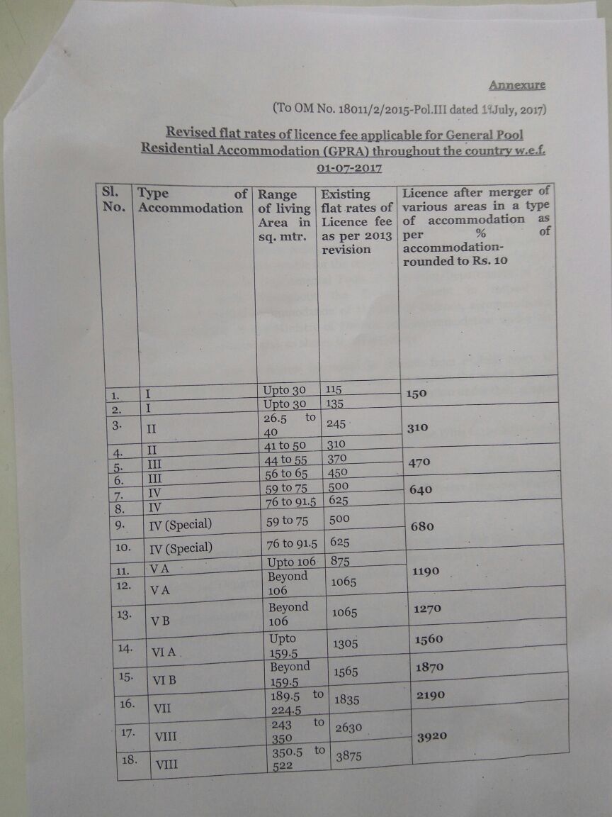 REVISION OF FLAT RATE OF LICENCE FEE FOR GENERAL POOL RESIDENTIAL ACCOMMODATION (GPRA) THROUGHOUT COUNTRY